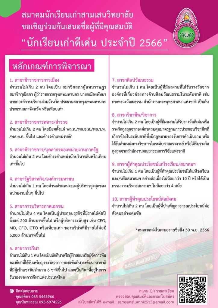 ขอเชิญร่วมกันเสนอชื่อผู้ที่มีคุณสมบัติ “นักเรียนเก่าดีเด่น ประจำปี 2566”