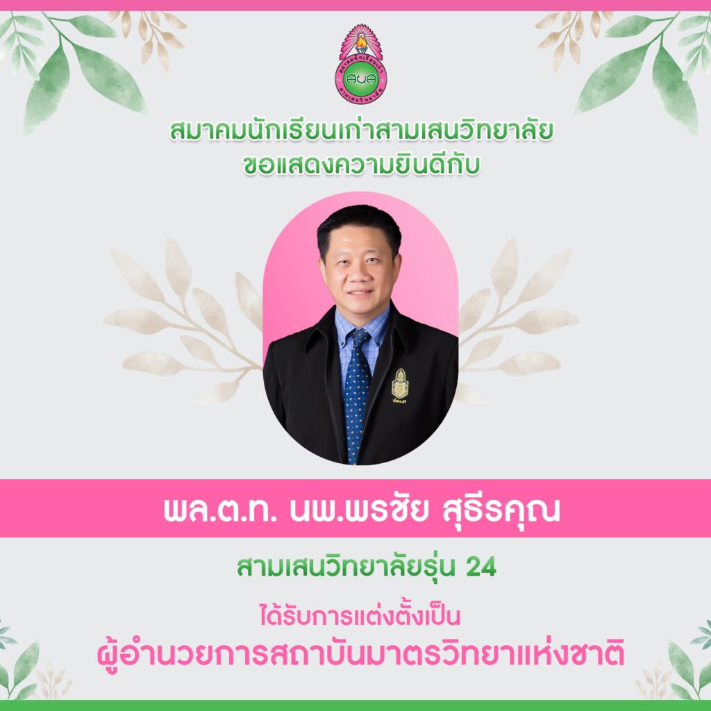 สมาคมนักเรียนเก่าสามเสนวิทยาลัย ขอแสดงความยินดีกับ พล.ต.ท.นพ. พรชัย สุธีรคุณ สามเสนวิทยาลัยรุ่นที่ 24 ในโอกาสที่ได้รับการแต่งตั้งให้ดำรงตำแหน่ง ผู้อำนวยการสถาบันมาตรวิทยาแห่งชาติ