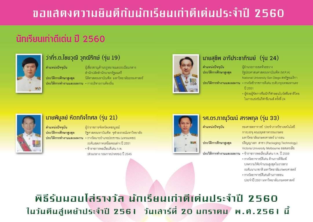 หลังจากผ่านการคัดเลือกจากคณะกรรมการพิจารณารางวัลนักเรียนเก่าดีเด่น ของสมาคมนักเรียนเก่าสามเสนวิทยาลัยในที่สุดก็ได้ผู้ที่เหมาะสมกับรางวัลนักเรียนเก่าดีเด่น ประจำปี 2560 เรียบร้อยแล้ว ขอแสดงความยินดีกับทั้ง 4 ท่านด้วยค่ะ