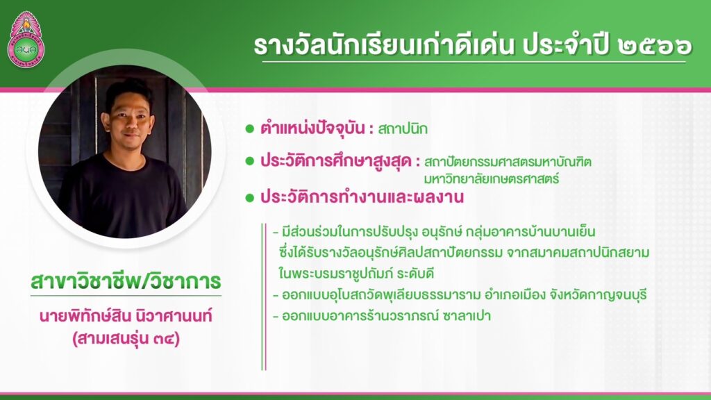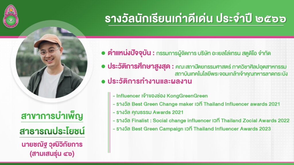 ๔. นายชณัฐ วุฒิวิกัยการ (รุ่น ๔๖) กรรมการผู้จัดการ บริษัทอะเยลโล่เทรน สตูดิโอ จำกัด