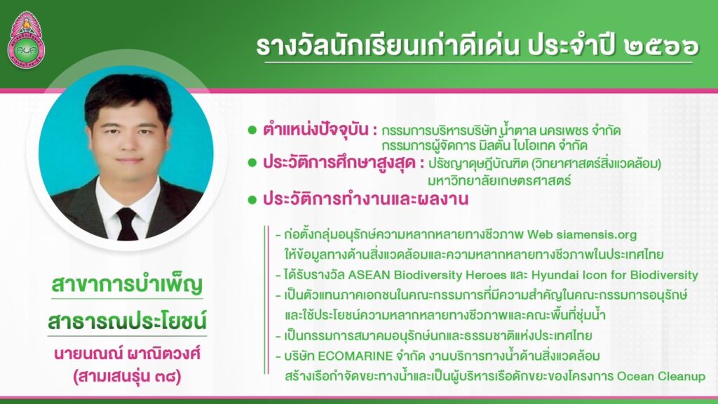 ๓. นายนณณ์ ผาณิตวงศ์ (รุ่น ๓๘) กรรมการบริหารบริษัท น้ำตาลเอกเพชร จำกัด และกรรมการผู้จัดการ บริษัท มิลตั้นไบโอเทค จำกัด