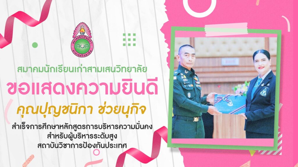 สมาคมนักเรียนเก่าสามเสนวิทยาลัย ขอแสดงความยินดีกับ – คุณปุญชนิกา ช่วยนุกิจ สามเสนรุ่น 24 สำเร็จการศึกษาหลักสูตรการบริหารความมั่นคงสำหรับผู้บริหารระดับสูง สถาบันวิชาการป้องกันประเทศ วิทยาลัยป้องกันราชอาณาจักร – คุณเอกสิทธิ์ สุขโหตุ สามเสนรุ่น 27 ได้รับรางวัลราชสิงห์ บุคคลต้นแบบแห่งปี 2565 – คุณณัชปภา จันทรโรจน์ สามเสนรุ่น 42 ได้รับรางวัลสตรีตัวอย่างแห่งปี สาขาสื่อมวลชน จากมูลนิธิเพื่อสังคมไทย – คุณภาณุพล รัตนกาญจนภัทร สามเสนรุ่น 23 ที่ได้รับการแต่งตั้ง ให้ดำรงตำแหน่งรองประธานกรรมการ ในคณะกรรมการองค์การตลาด และ – คุณสมศักดิ์ สรวิจักษณ์ สามเสนรุ่น 23 ได้รับการแต่งตั้ง ให้ดำรงตำแหน่งกรรมการอื่น ในคณะกรรมการองค์การตลาด